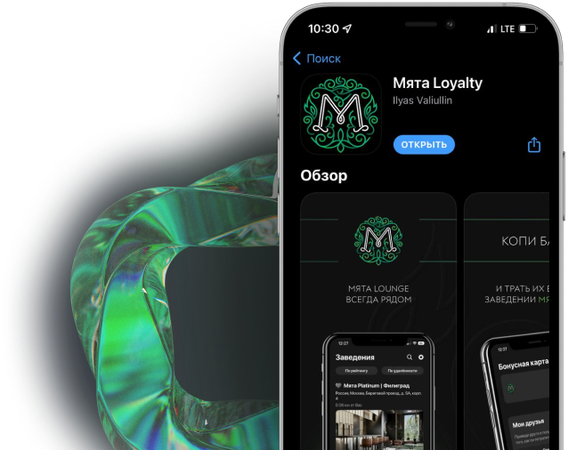 Скачайте приложение Мята Loyalty и пользуйтесь программой лояльности. Копите баллы и оплачивайте ими до 25% от суммы чека. Получайте привилегии
